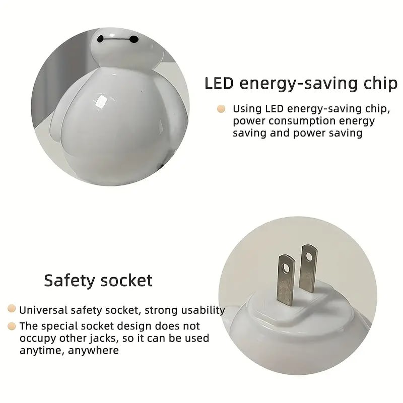 1pc Baymax Cartoon Style Night Light, Bedroom Study Light Switch, Wall Light, Direct Plug-in Electricity-saving Led Light, Creative Cute Energy-saving Light