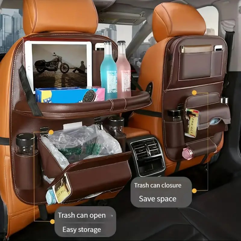 1pc Car Seat Back Faux Leather Luxury Storage Bag With Dining Tray Tissue Box Garbage Bag Hanging Bag Rear Seat Back Storage Bag