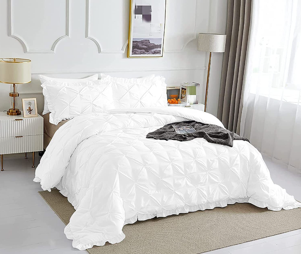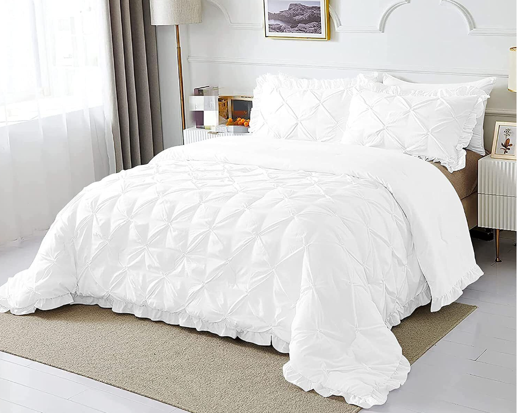 3 PC Pinch Pleated Comforter Set Egyptian Cotton 1000 TC All Size & Solid Color