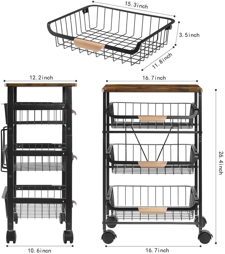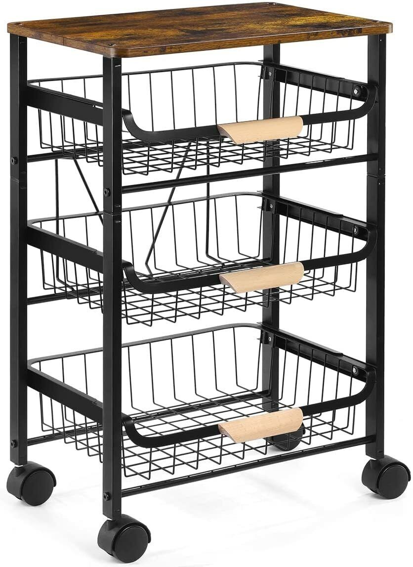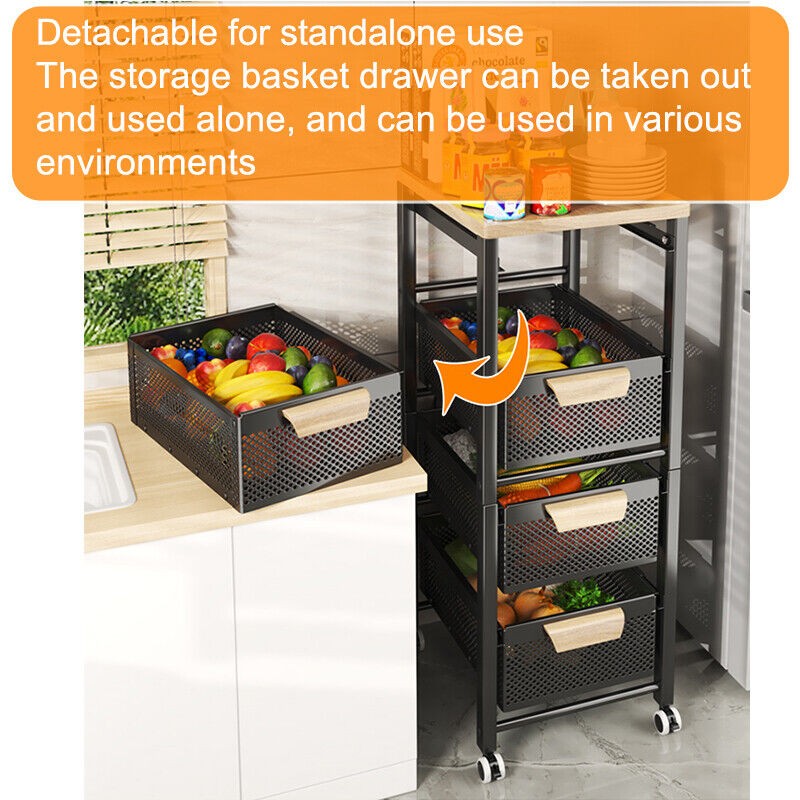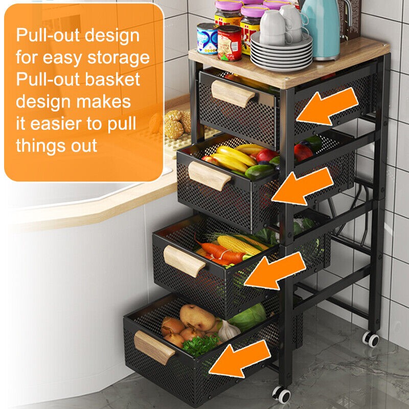 4/5 Tier Kitchen metal Storage Rolling Cart organizer with Drawers Wheels Shelf