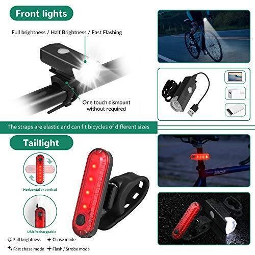 8 Pack Bicycle Accessories, Bike Light Set USB Rechargeable, 1 Bike Water Bottle Holder, Bike Bag and 1 Bike Aluminum Bicycle Bell,P