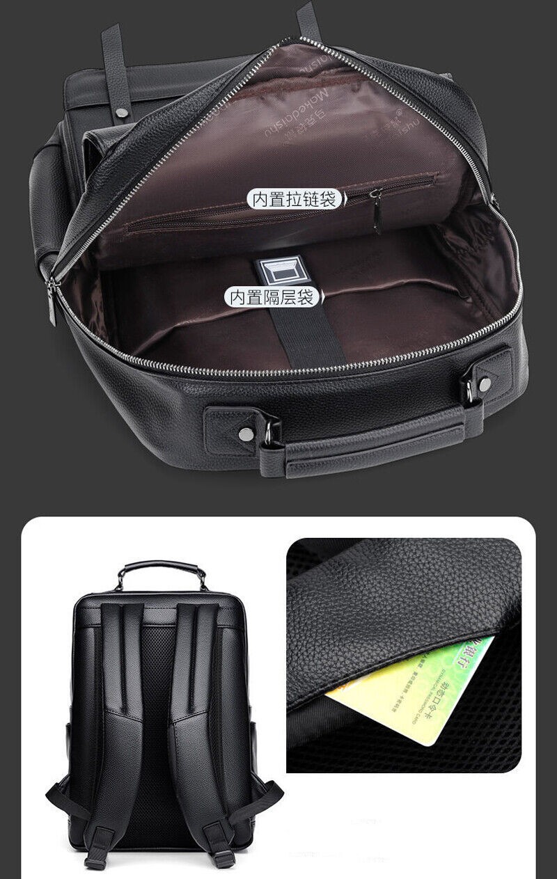 AU Fashion Mens Genuine Leather School Backpack Laptop Travel Waterproof Bag
