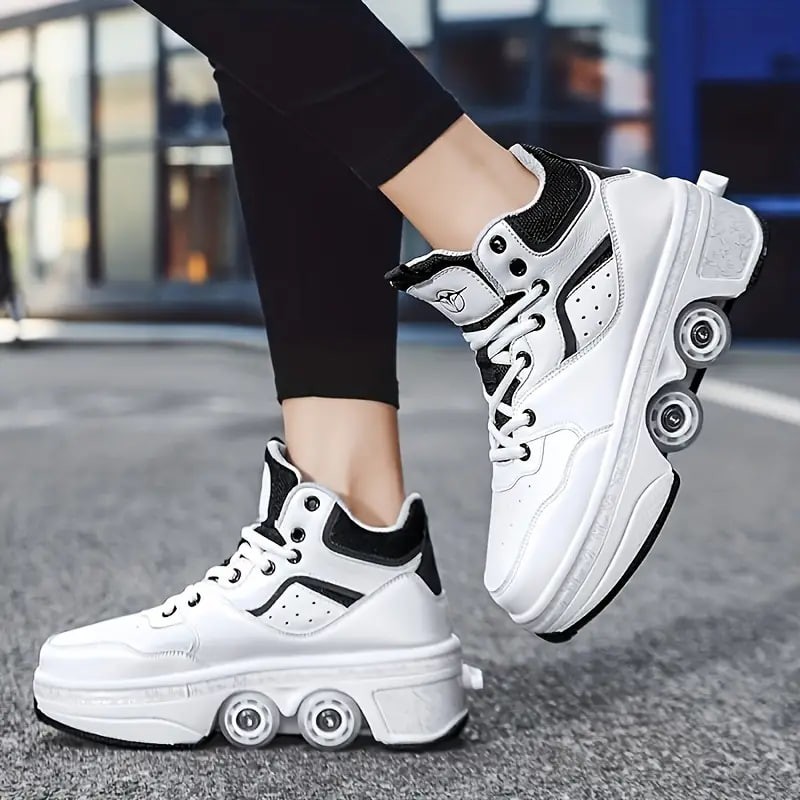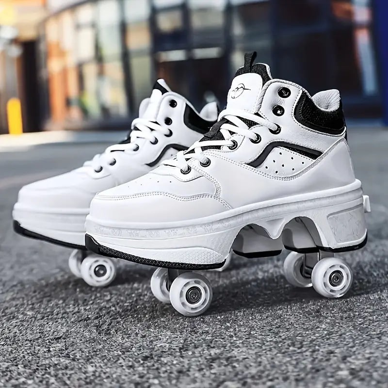 Boy's Trendy High Top Roller Shoes With 4 Detachable Wheels, Comfy Lace Up Casual Skate Sneakers