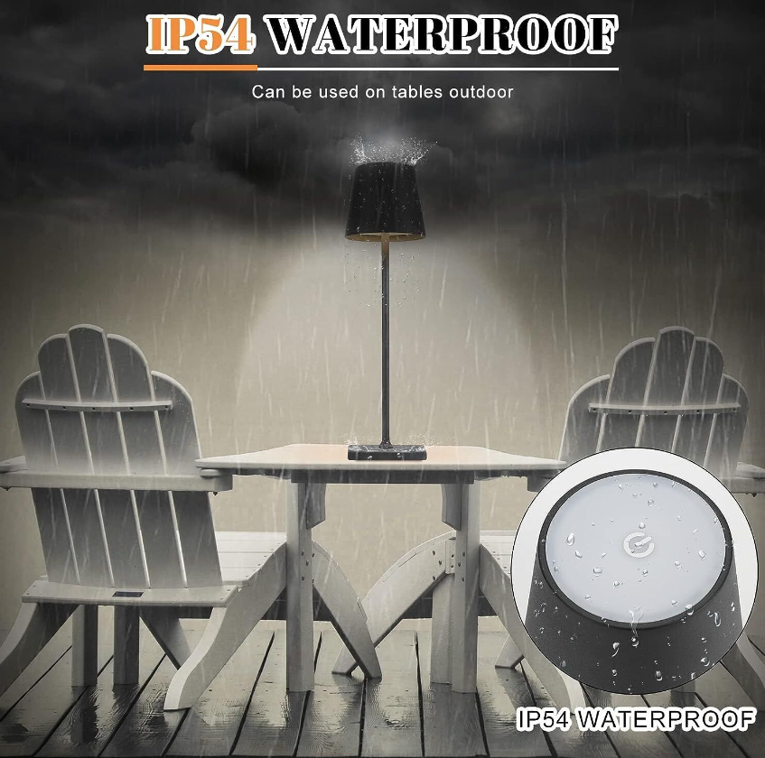 Rechargeable Cordless Table Lamp, Dimmable Lamp, IP54 Waterproof, Long Battery Life Bedside Lamp for Restaurant/Indoor/Outdoor