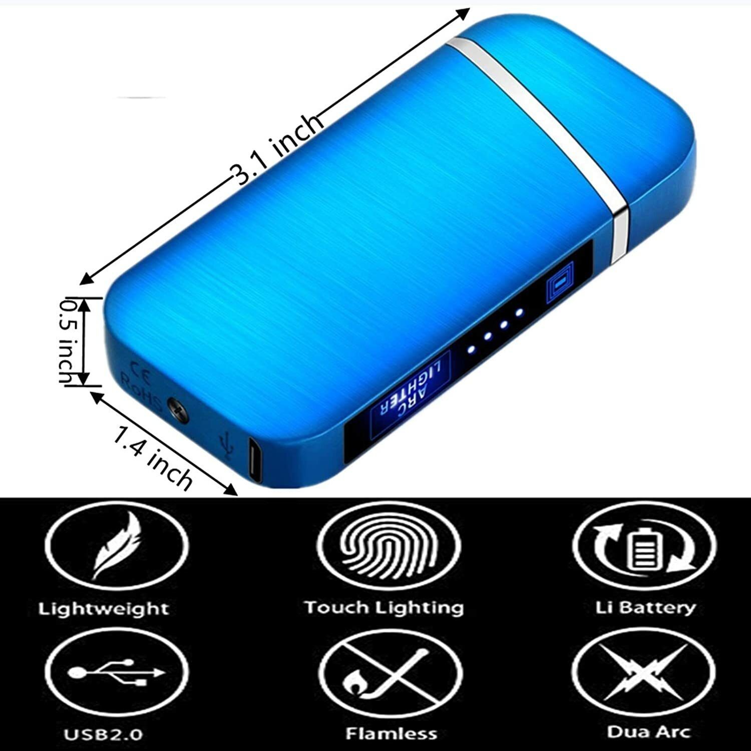 Dual Arc Electric USB Lighter Rechargeable Plasma Windproof Flameless Cigarette