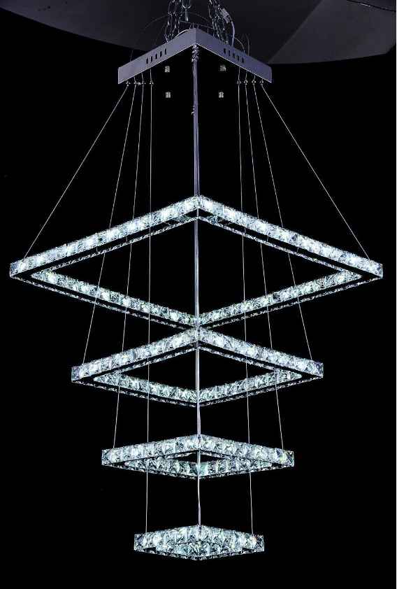 LED Square K9 Crystal Ceiling Fixture Dining Room Pendant Lamp Light Chandelier