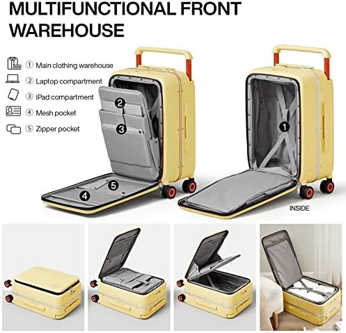 Mixi Carry On Luggage Wide Handle Luxury Design Rolling Travel Suitcase PC Hardside with Aluminum Frame Hollow Spinner Wheels, with Cover, 20 inch, Lark Yellow