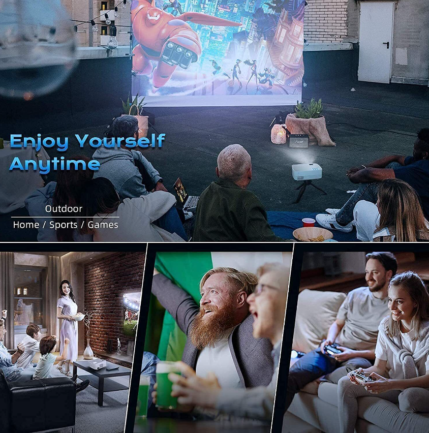 • Better than other products (1) Update brightness: Our 6500Lumeus is more realistic than other products. Brighter than 99% mini projectors. (2) Update the original resolution: The native resolution of our mini portable projector is supports 1920 x 1080P, and the screen display is clearer and more vivid. (3) More environmentally friendly accessories: The product uses high environmentally friendly materials, making daily home theater use more assured.