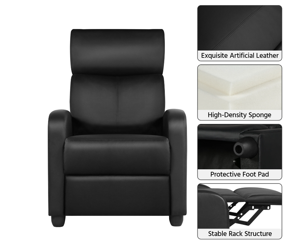 • Easy to assemble: Assembly is required but very simple. This recliner comes in two parts - the backrest and base part, which only takes you a few minutes to put them together and is also easy to disassemble if needed.