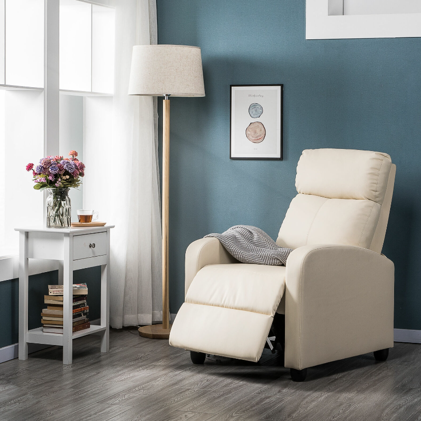 • Protective feet: This single recliner chair sits on four sturdy feet equipped with non-marking pads, which efficiently protects both the sofa and the hard (wood) floor while moving.