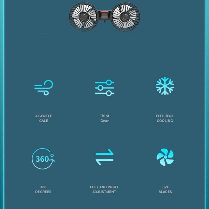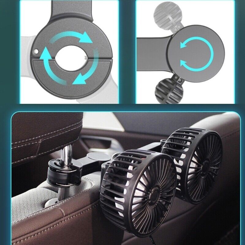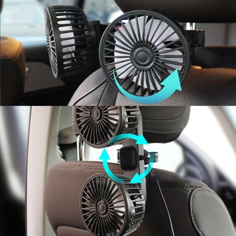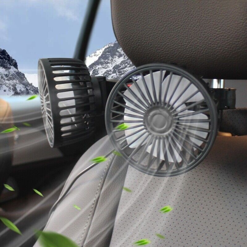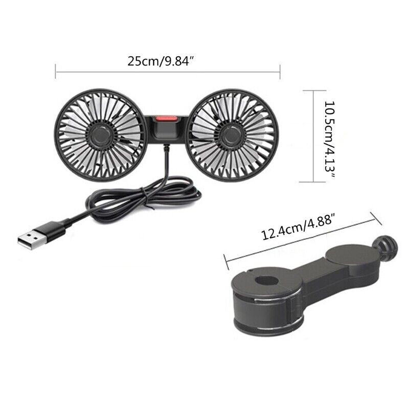 USB Car Fans Dual Head 360° Rotation, Powerful Cooling Fan