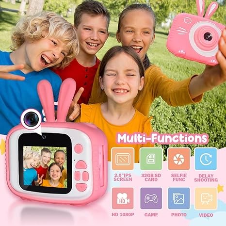 Vasttron Kids Camera for Girls Boys 3-12 Years Old Selfie Children Camera Infant Toys Bunny 1080P HD Digital Video Camera for Toddler Christmas Easter Birthday Gifts with 32GB SD Card