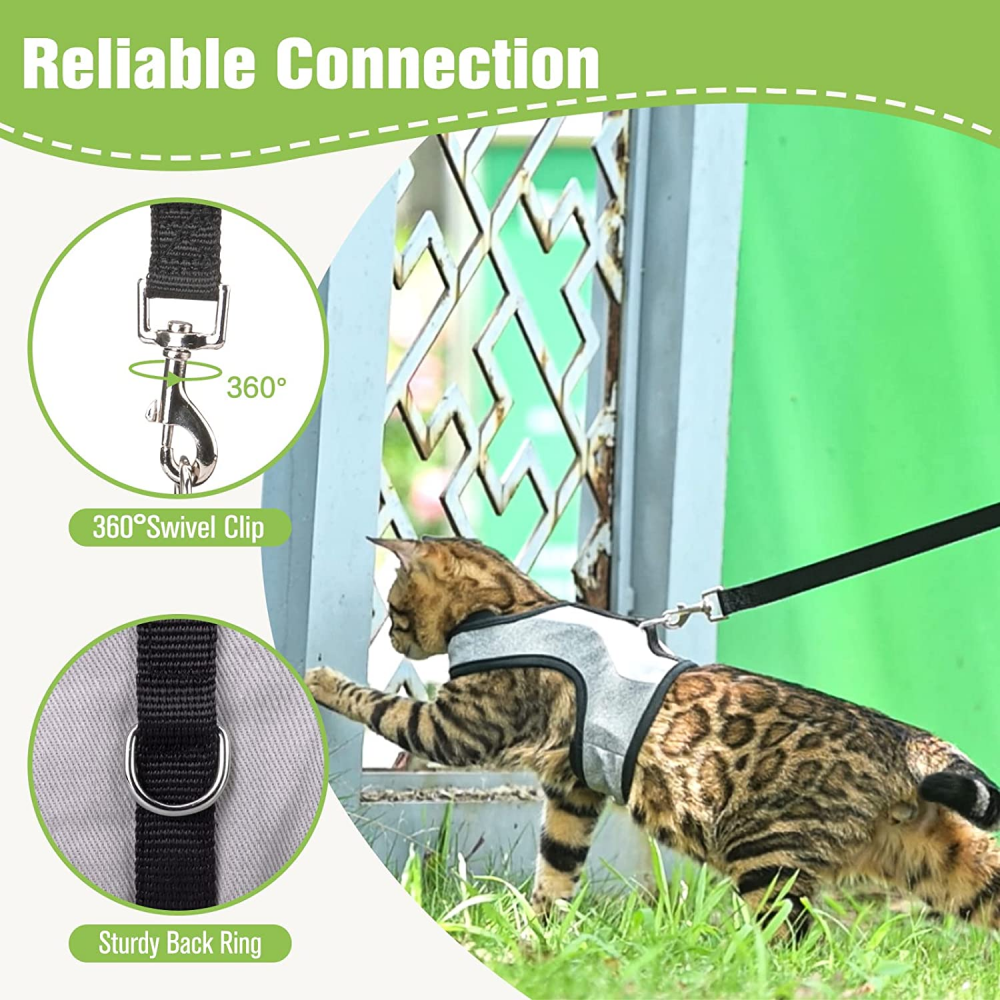 VKPETFR Cat Harness and Leash Set, Escape Proof Adjustable Kitten Medium