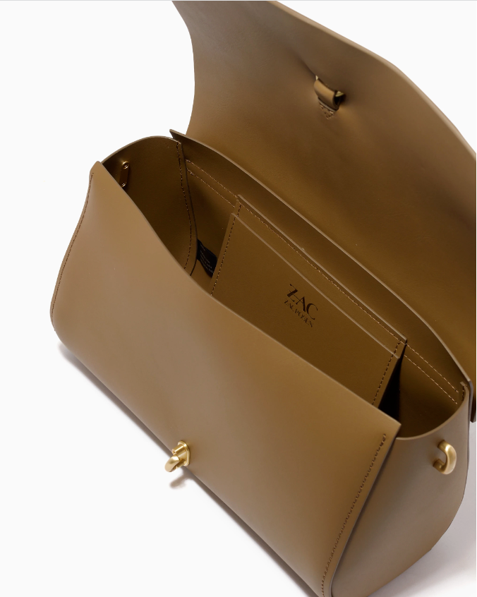 Zac by Zac Posen's Belay bag has a baguette-inspired silhouette with a front flap suspending the label's iconic functioning lock. Bordered by tonal stitching, it comes with a detachable shoulder strap and opens to reveal a spacious compartment with a card slot.