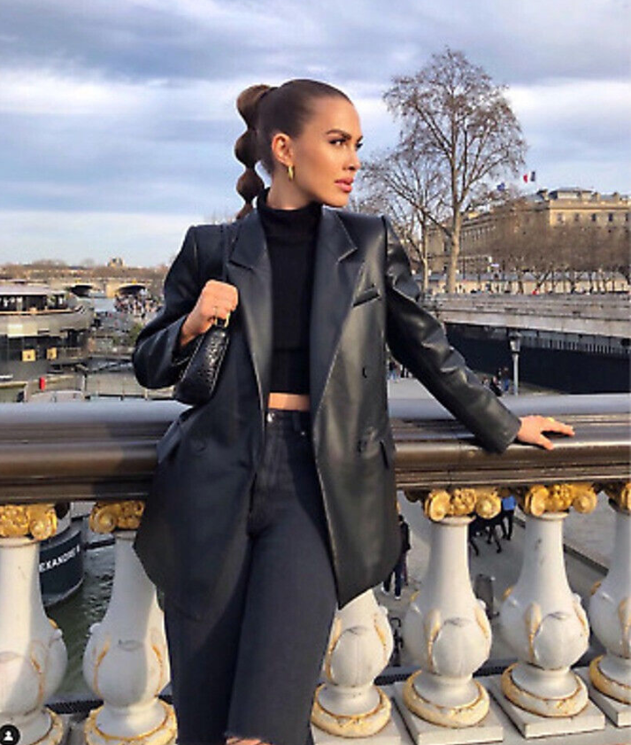 This faux leather blazer from Zara is made from a soft polyester and polyurethane with matching lining, ensuring the most comfort fit. Featuring a lapel collar, back vent at hem, long sleeves with a triple button up cuff and front button fastening. The shoulder pads give off a more structured look and the use of chest welt and front flap pockets provides practicality to the smart blazer making it perfect for everyday wear. The colour and structure of this blazer leave it versatile enough to wear for any occasion.